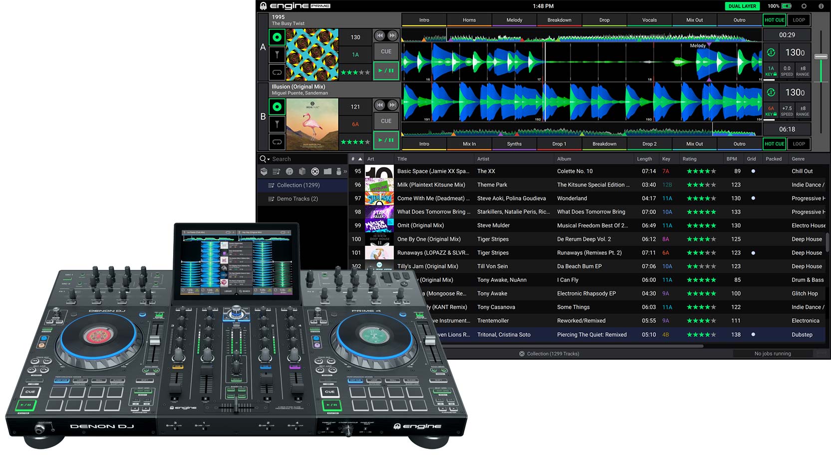 iTunes、Serato DJ Pro、Native Instruments Traktor ProそしてRekokrdboxのデジタルライブラリをDenon DJより無償提供しているEngine Prime Music managementソフトを使用して、Prime4へ簡単にインポートすることが出来ます。