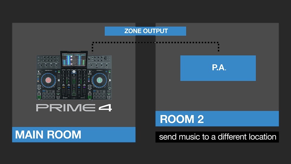 メイン会場でダンスフロアを盛り上げながら、別の部屋や別の場所に異なる音楽を同時に流すことが可能になりました。ムード、ボリューム、EQをコントロールしてオーディエンスのニーズに合わせたサウンドを正確に届けます。