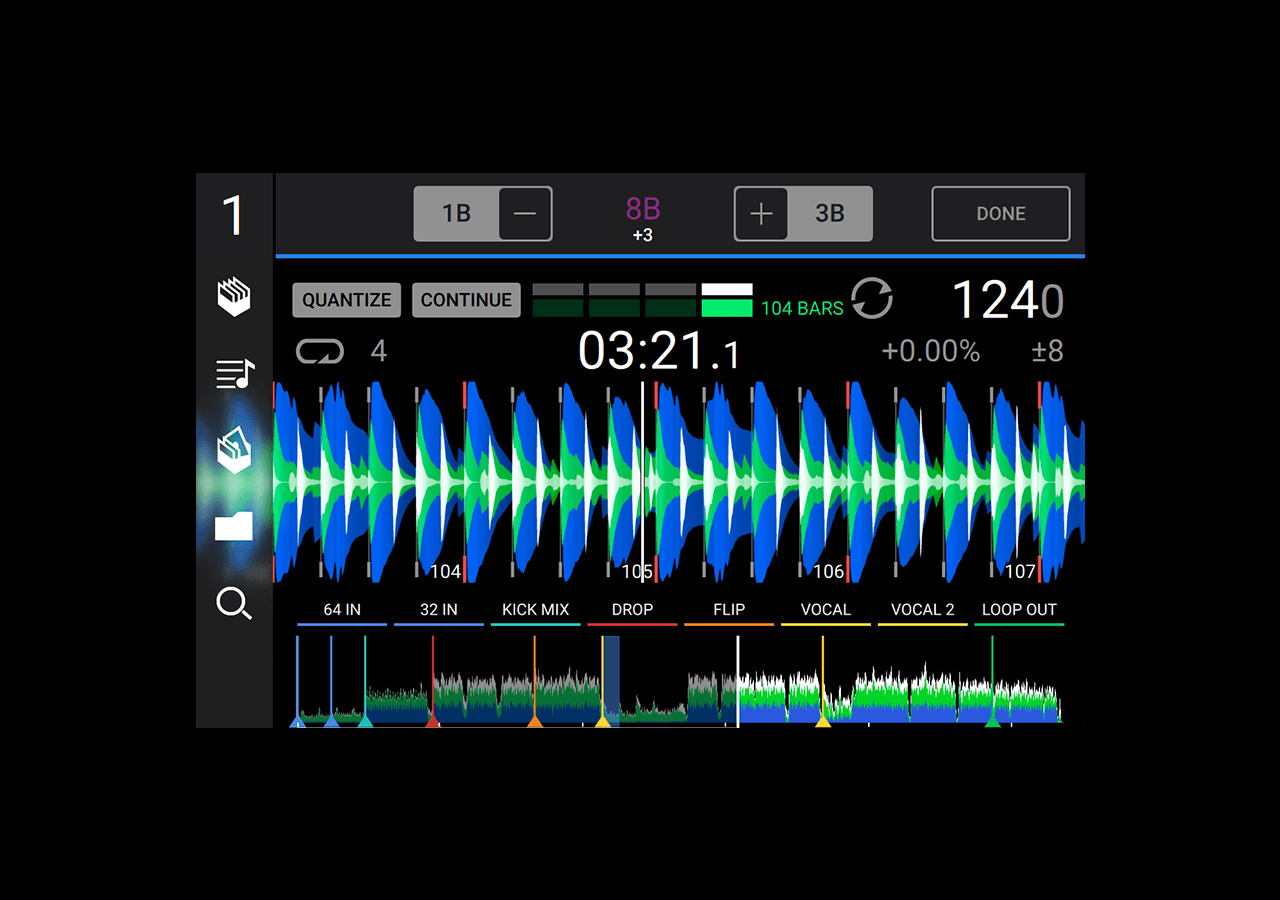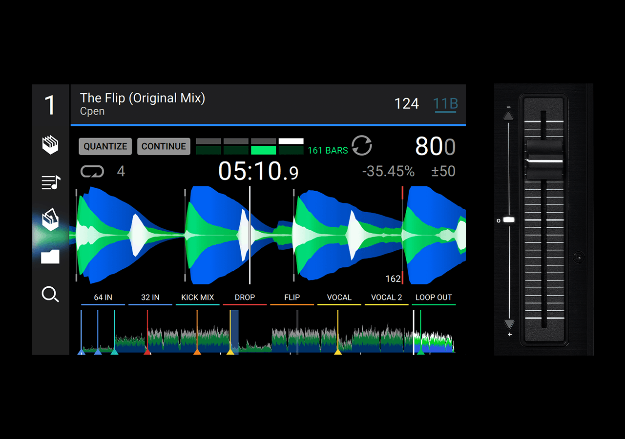 Trigger Hot-Cues, engage Loop regions, Roll and Slice your beats with 8, responsive rubber performance pads – now with sophisticated design illumination for improved club visibility.